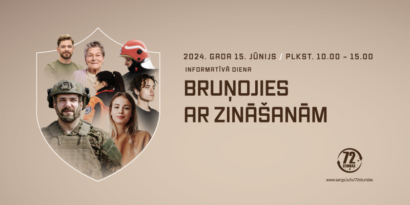 Dodoties uz pasākumu, iedzīvotāji aicināti arī iepazīties ar materiāliem ziņu portāla “Sargs.lv” sadaļā “72 stundas”, kur līdzās bukleta “Kā rīkoties krīzes gadījumā” jaunākajai redakcijai pieejama arī rokasgrāmata “Kā rīkoties kara gadījumā”, kas tapusi, mācoties no Ukrainas pieredzes cīņā pret Krievijas okupācijas armiju: www.sargs.lv/lv/72stundas-