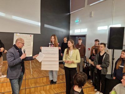 Kuldīgas centrā pie pasta ēkas pirmdien, 20.janvārī bija pulcējušies novada 9. klašu skolēni, lai piedalītos ...