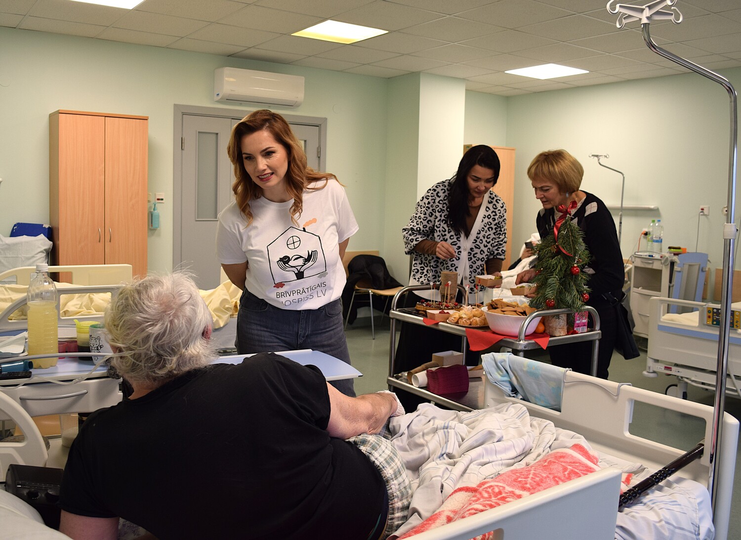 Pēc brīvprātīgo kopbildes un līgumu parakstīšanas, tika sagatavots “Svētku galds”- dažādi gardumi ratiņos, kā piemēram, “Ineses kūkas”, “Druvas saldējums” un citi našķi vai neikdienišķas uzkodas, ko pacienti nesaņem ikdienā. Tie jaunie brīvprātīgie, kuri jau bija izgājuši apmācības, devās līdzi pieredzējušākiem Hospiss pārstāvjiem, lai iepazītos ar pacientiem nodaļā un praktiski pieredzētu “Svētku galda” norisi.
