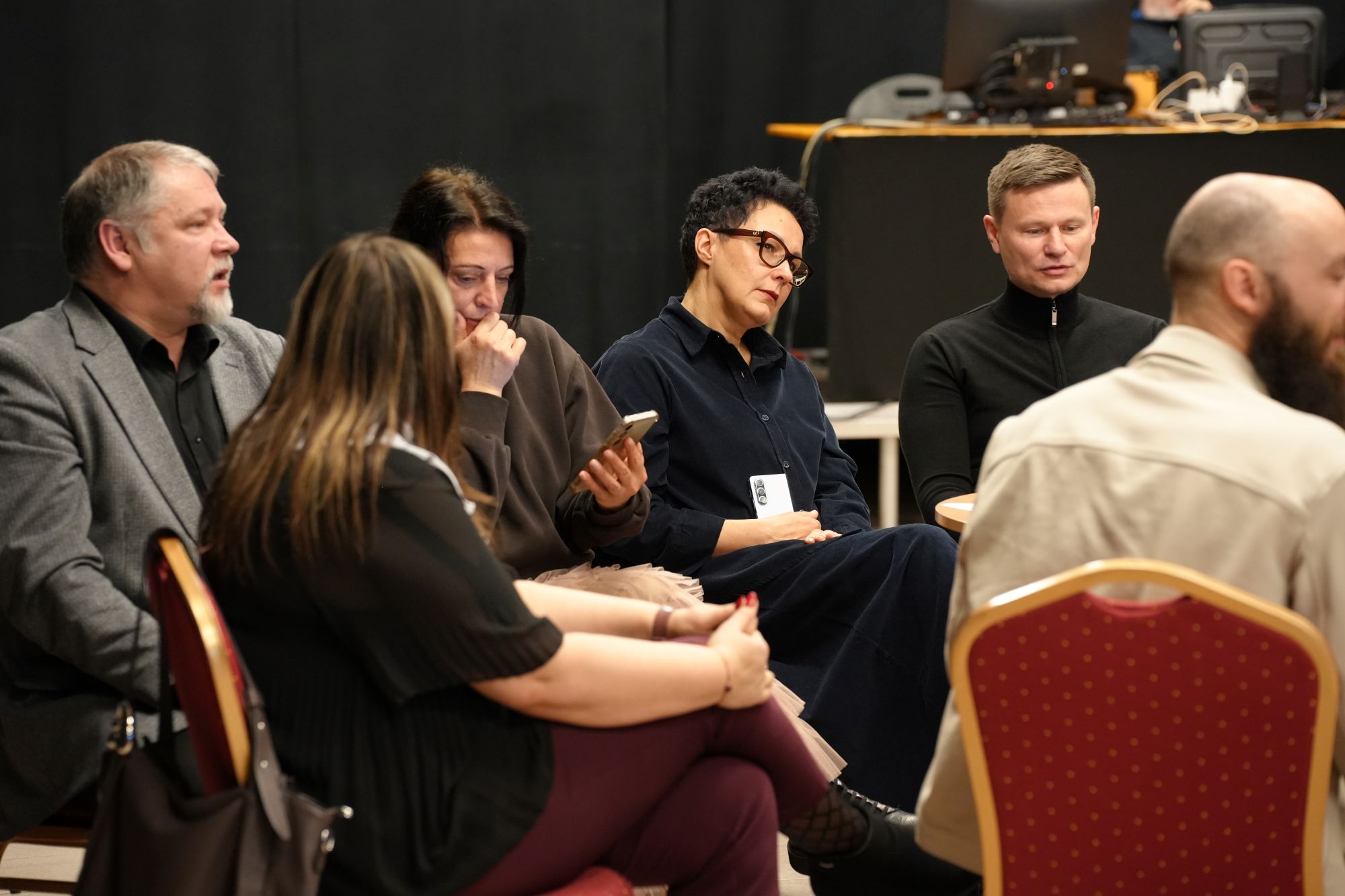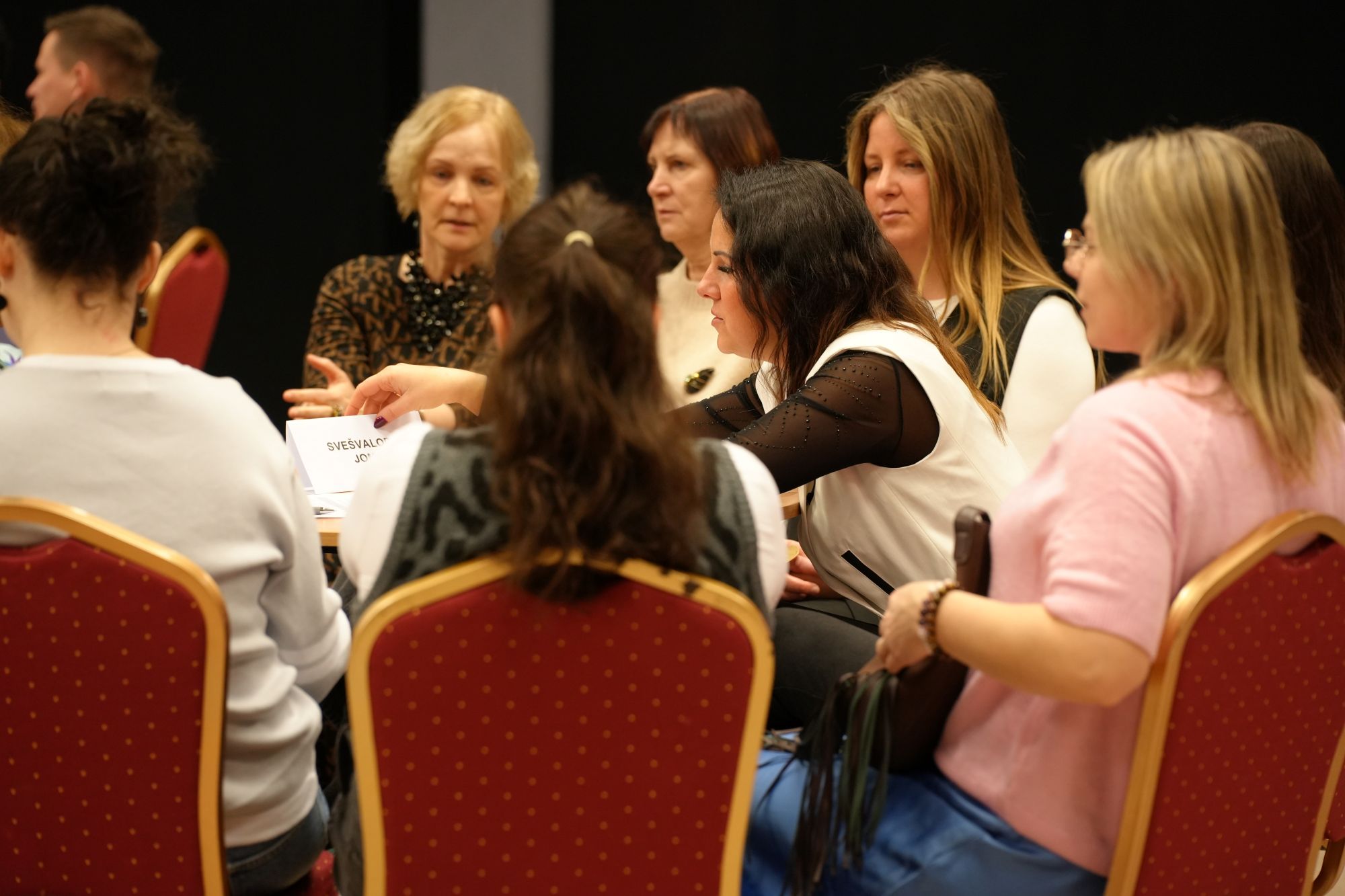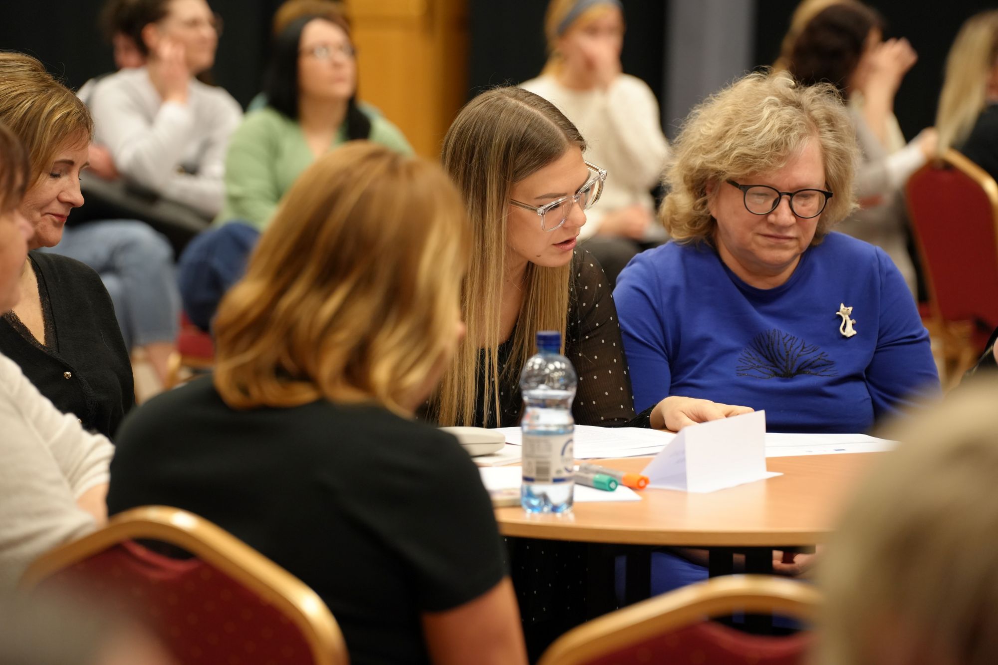 Dienas turpinājumā pedagogi aktīvi darbojās grupās pa mācību jomām un vadības komandām, praktiski analizējot un pilnveidojot metodes darbam ar apdāvinātajiem bērniem.