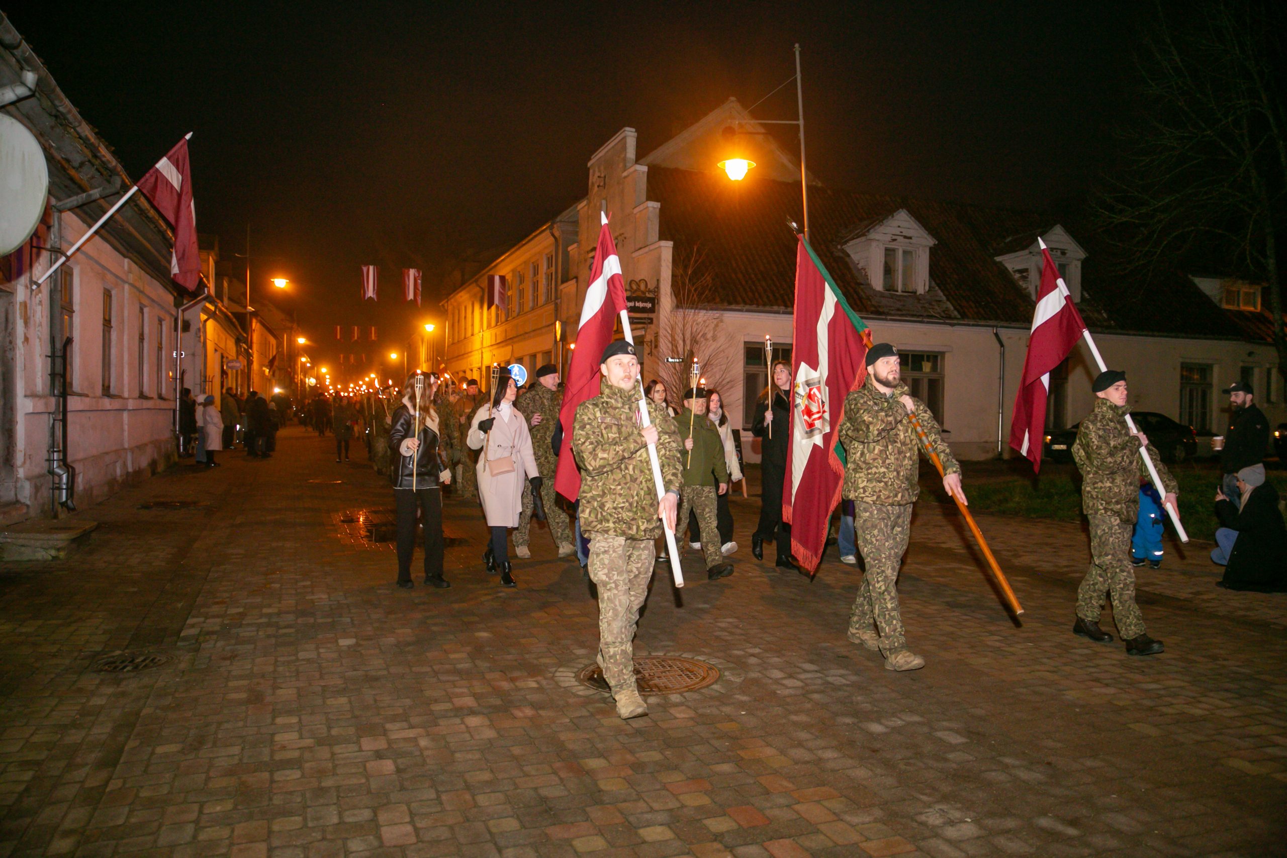 Iedzīvotājus ar svinīgu uzrunu sveica Kuldīgas novada domes priekšsēdētāja Inese Astaševska, bija iespēja dziedāt līdzi Latvijai nozīmīgām dziesmām, kā arī baudīt tēju un siltu zupu.