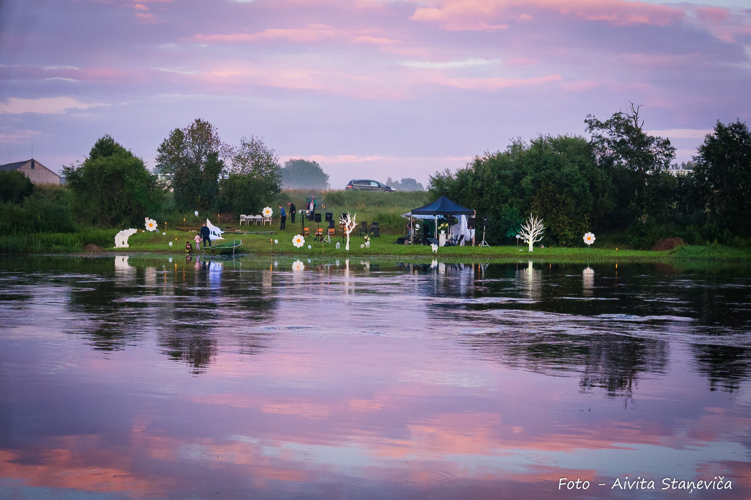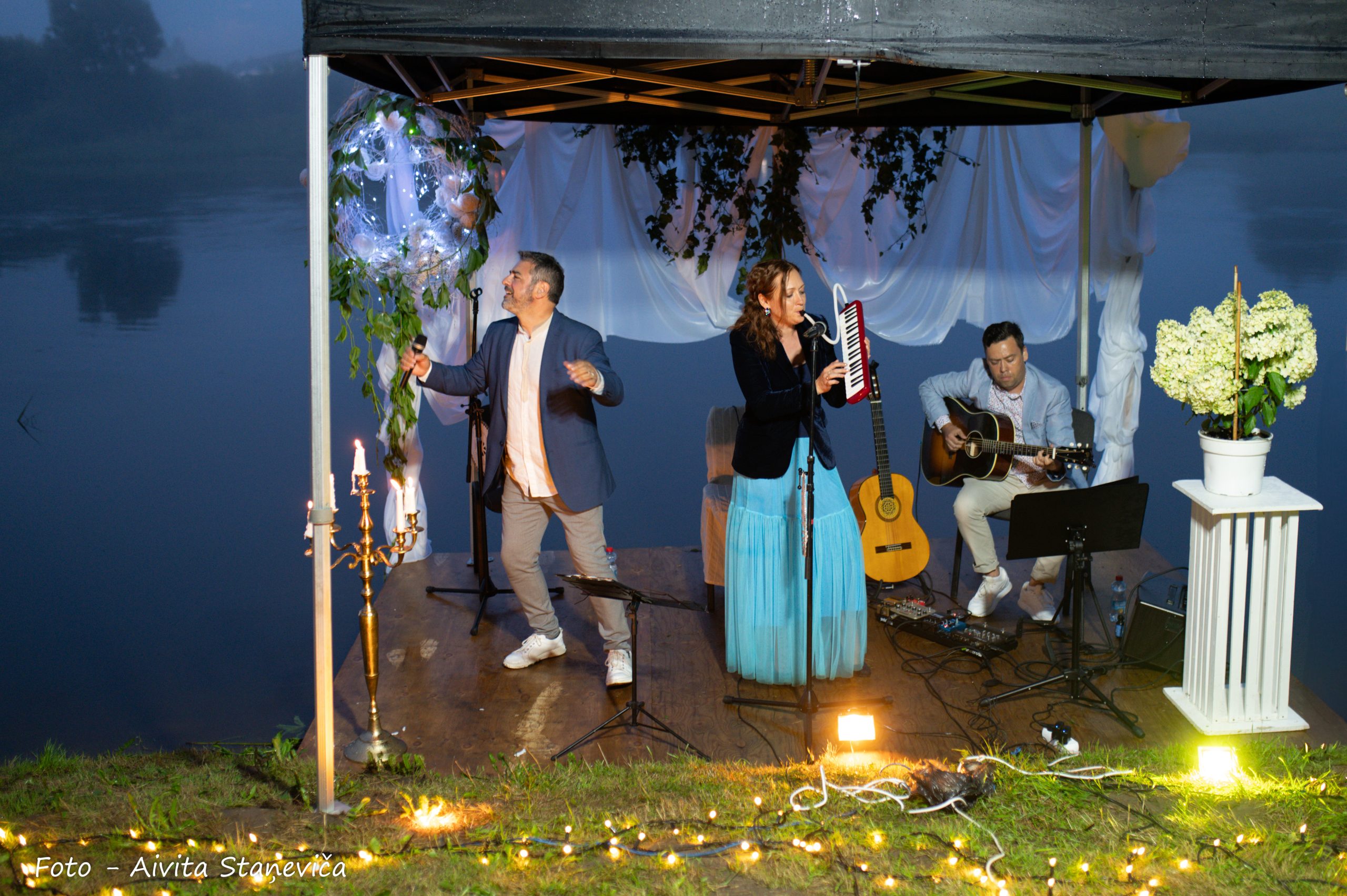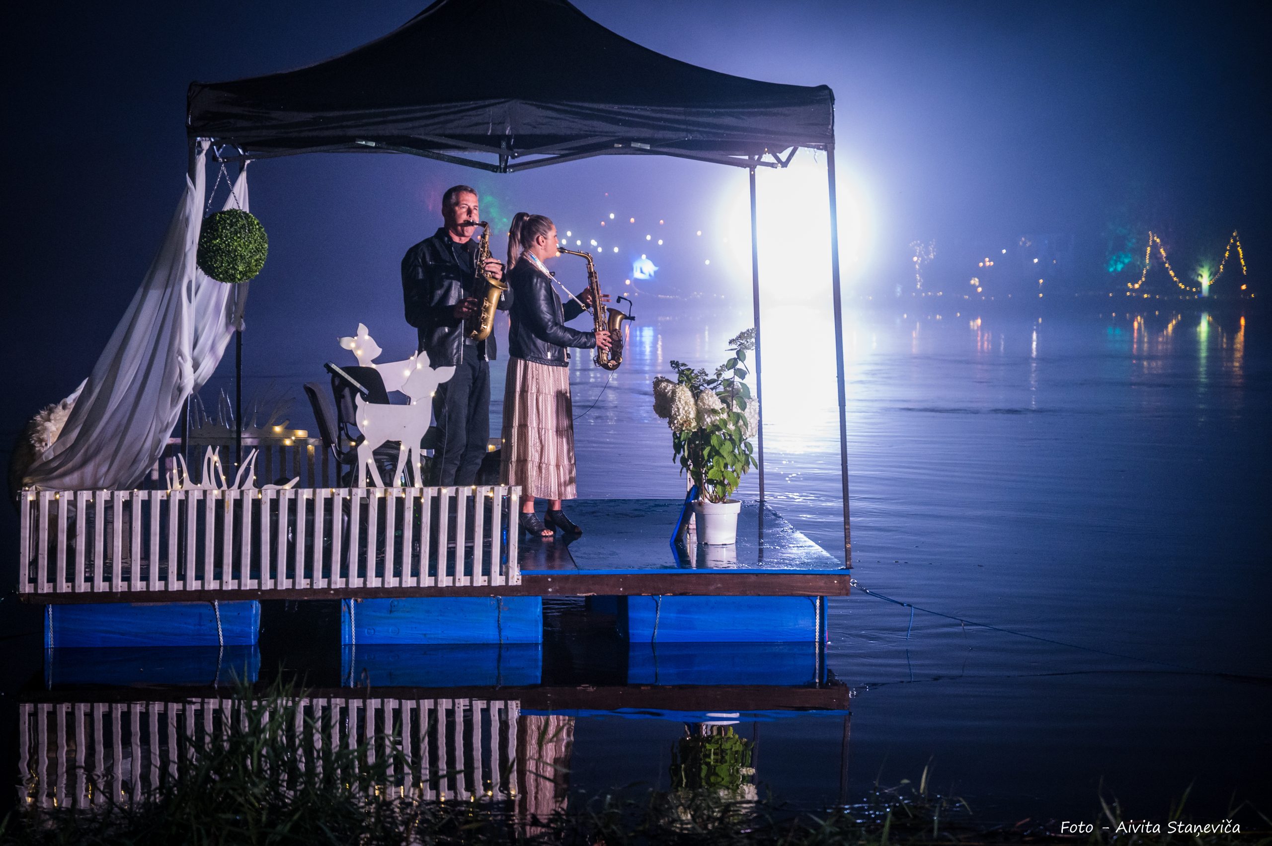 Ventas labajā krastā ar muzikālu sniegumu priecēja dziedātāja Aija Vītoliņa kopā ar pianistu Romānu Vendiņu, sniedzot lirisku un emocionāli piesātinātu priekšnesumu. Tikmēr kreisajā krastā klausītājus priecēja dziedātāju Ineses Ērmanes un Havjēra Fernandezsa duets, ko papildināja ģitārista Aleksandra Kuzmina stīgu skaņas. Savukārt pašā Ventā – uz plosta – Marta Apines un Grankanārijas mūziķa Neftali Robainas saksafonu skaņas.