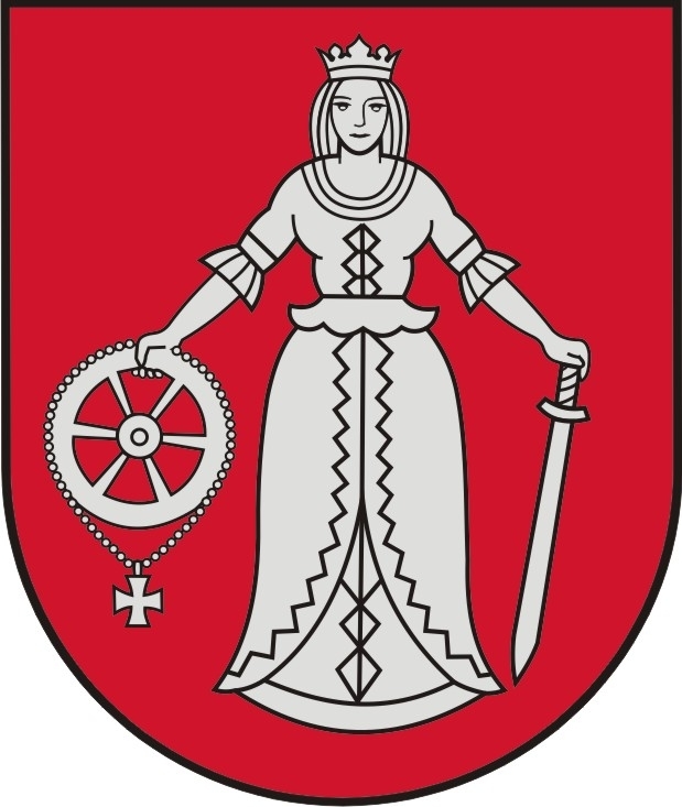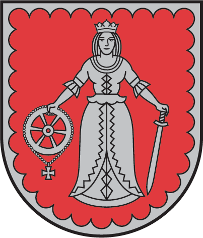 Heraldiskais apraksts – „Sarkanā laukā sudraba jaunava – Sv.Katrīna – ar kroni; labajā rokā tāds pats rats ar tam piekārtu krustiņu, kreisajā – lejupvērsts zobens; sudraba izrobota šaurapmale”.