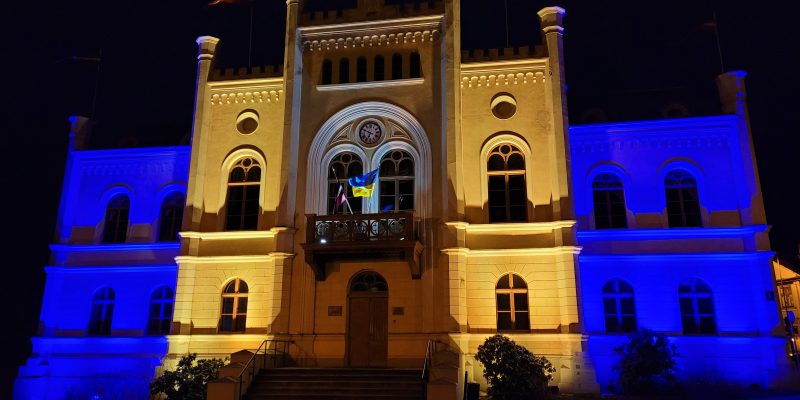 Paužot mūsu valsts nerimstošu atbalstu Ukrainas brīvībai – Kuldīgas novada domes ēka diennakts tumšajā laikā tiks izgaismots Ukrainas karoga krāsās.