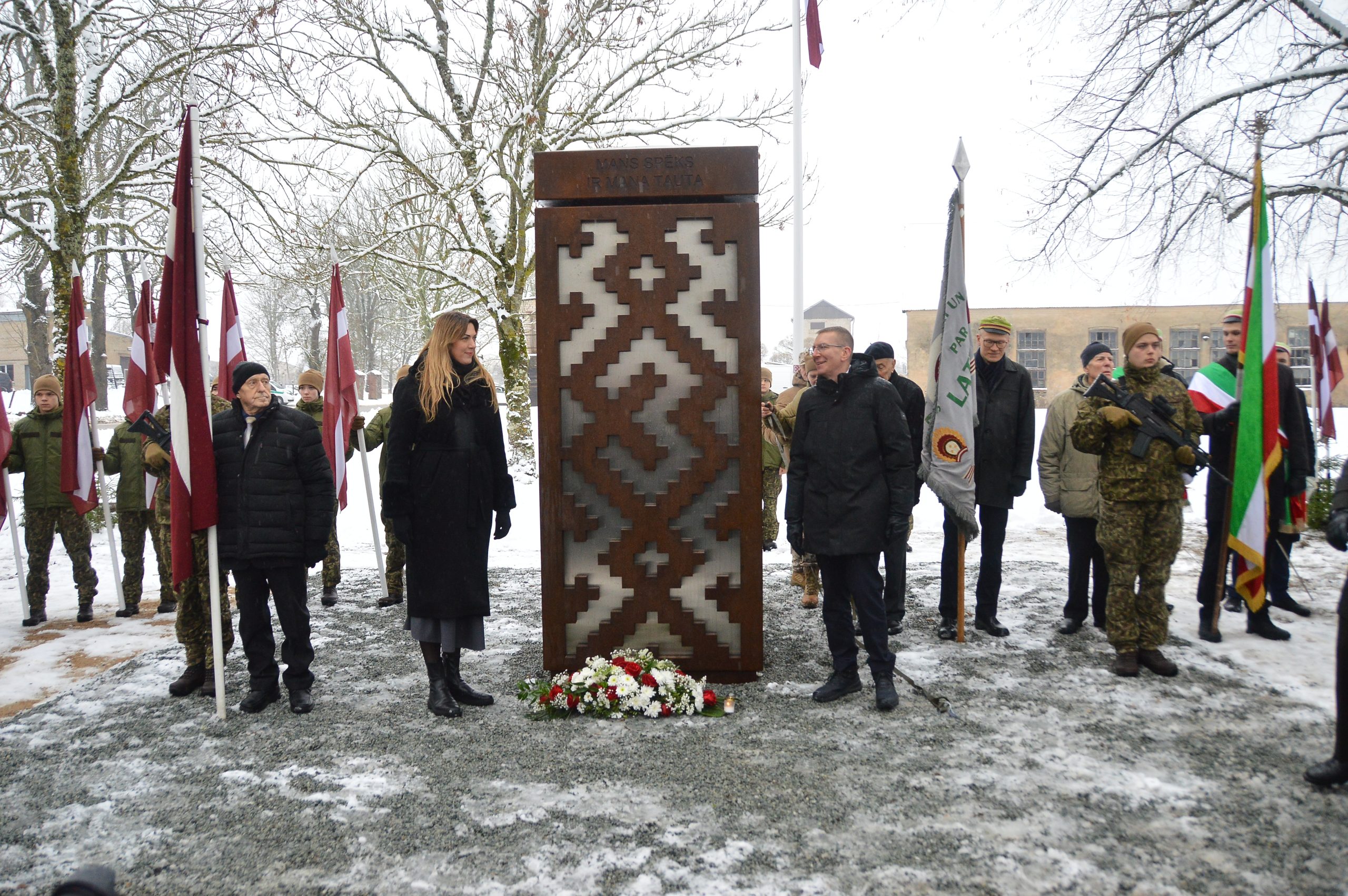 “Ziemassvētku laiks mūsu tautas brīvības cīņu vēsturē ir īpašs laiks. Mēs godinām Pirmajā pasaules karā bojā gājušos strēlniekus, mēs atceramies un pieminam tos latviešu karavīrus, kas Otrā pasaules kara laikā Kurzemes Ziemassvētku kaujās atdeva savas dzīvības, cīnoties sirdī un prātā par Latviju, bet svešu valstu karaspēkā. Pirms teju 80 gadiem, tumšajos okupācijas laikos, kad šķita, ka brīvības dzirksts ir gandrīz apdzisusi, mūsu nacionālie partizāni uz 24 stundām spēja atjaunot Latvijas valsti mazā teritorijā. Par to mēs viņiem sakām paldies un šodien atklājam pieminekli, lai godinātu viņu piemiņu un atgādinātu par mūsu tautas brīvības alkām,” uzsver Valsts prezidents Edgars Rinkēvičs.